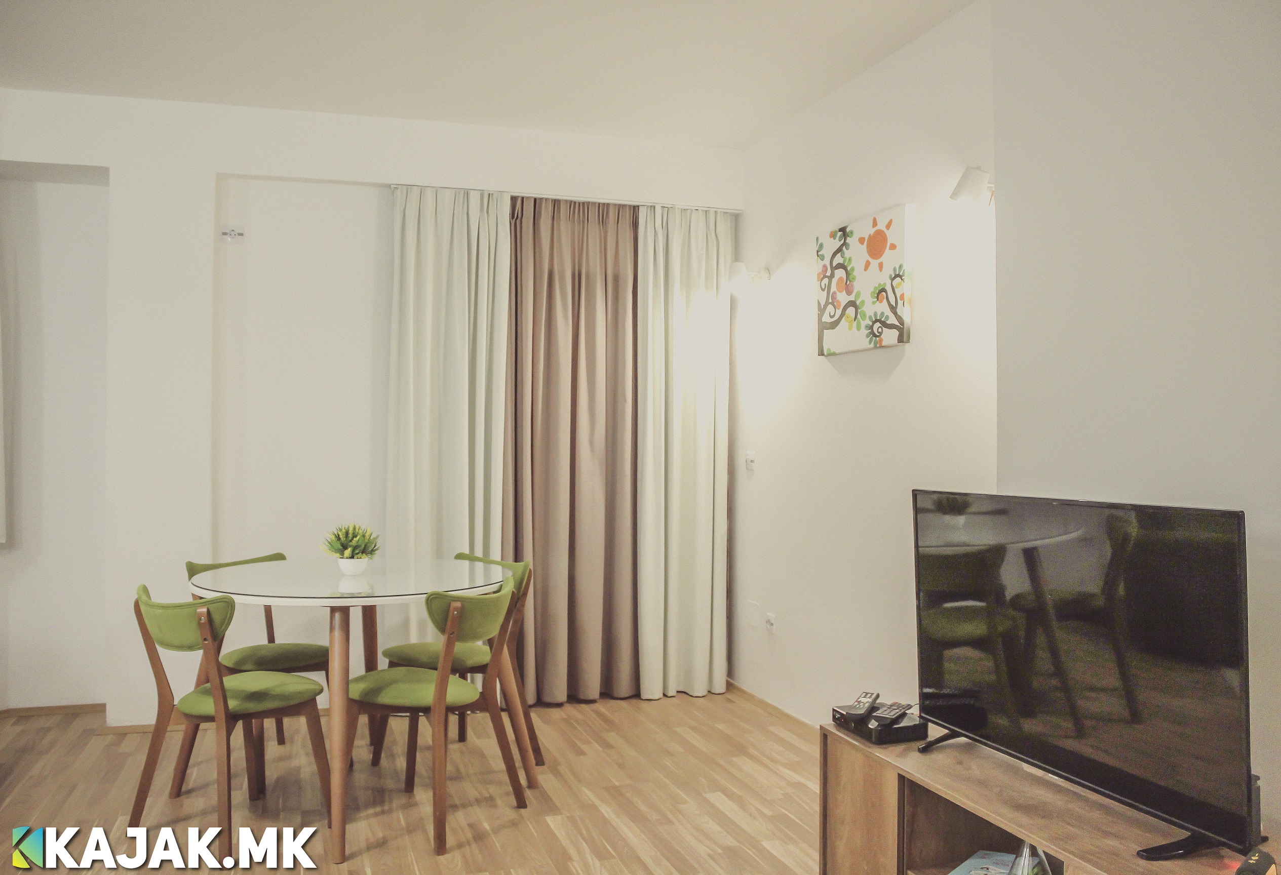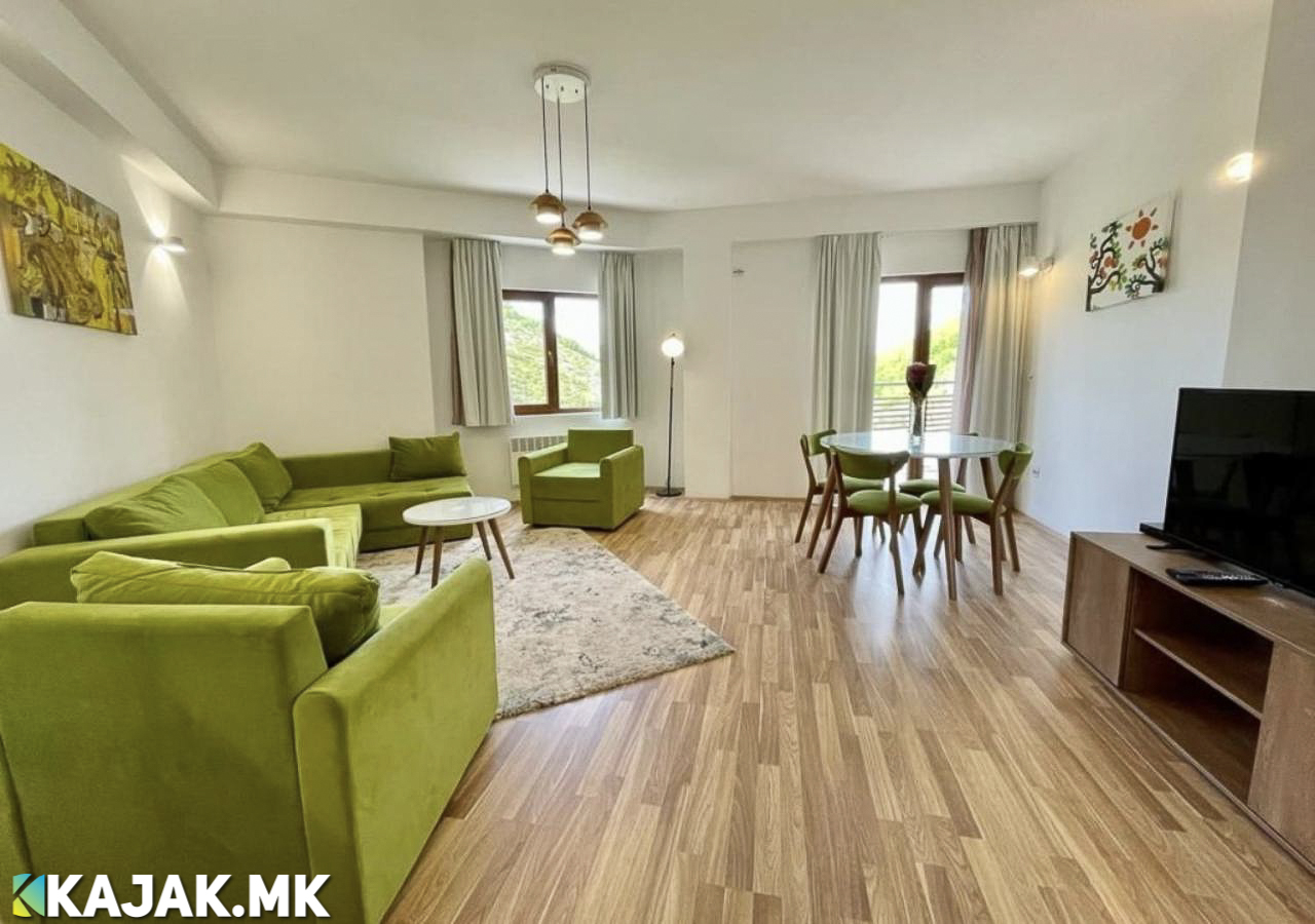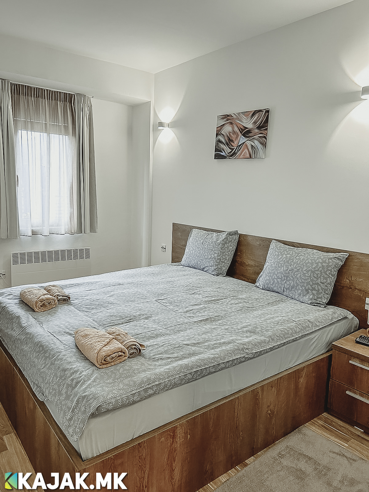 Bëhet fjalë për një apartament me dy dhoma. Në dhomën e gjumit ka një krevat dopio, ndërsa në dhomën e ndenjes ka një pesësedësh me mundësi shtrirjeje, ku mund të flenë edhe 4 persona.
