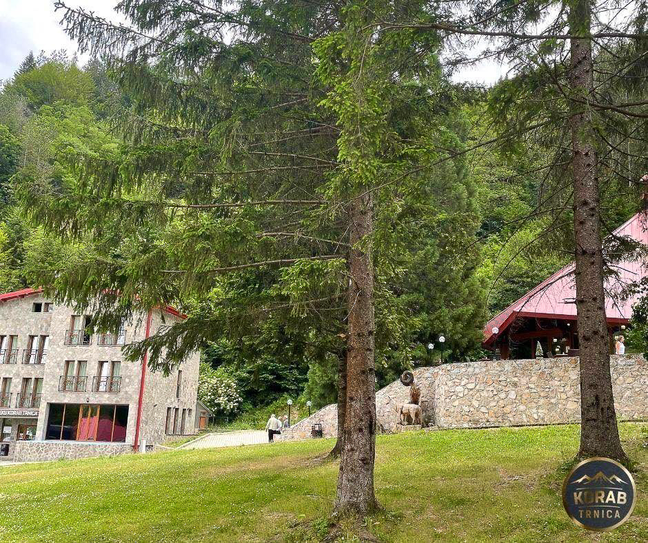 Në kompleksin “Korab Trnica” ndodhet restoranti i restauruar plotësisht me pamje dhe ndërtim autentik nga viti 1974. Restoranti ka ruajtur pamjen origjinale të jashtme dhe të brendshme, por për të mundësuar pritjen e një numri më të madh mysafirësh, janë ndërtuar terasa verore përmes të cilave kalon një pishinë me troftë dhe fontana që derdhen në të.