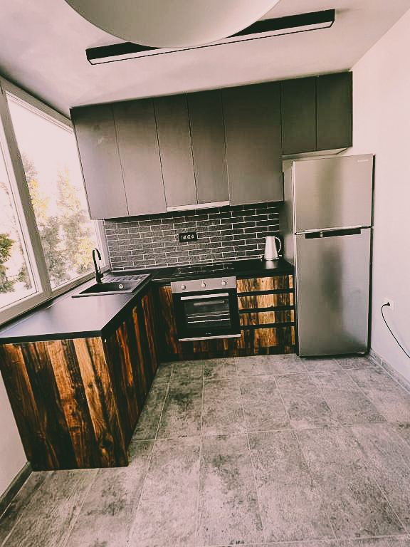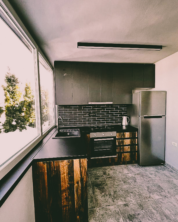 Kuzhina është plotësisht e pajisur dhe ofron pamje nga liqeni.