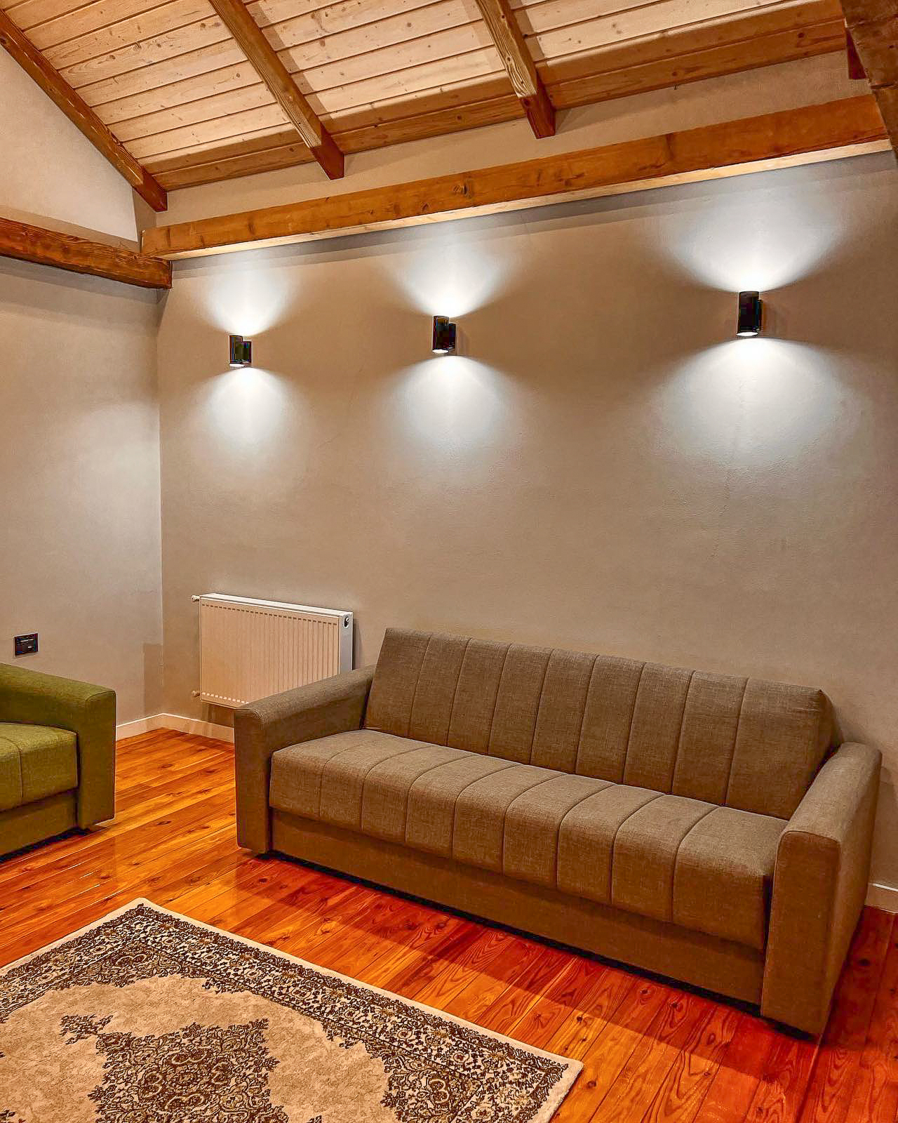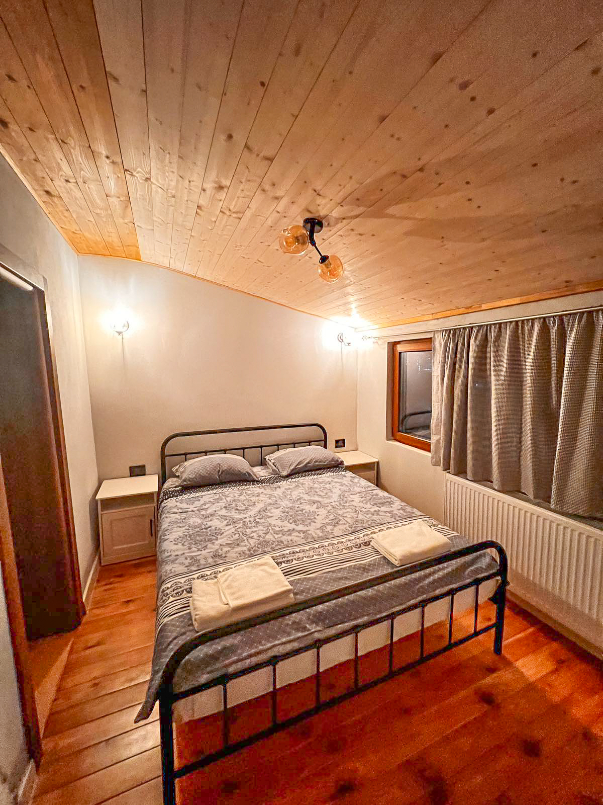 Shtëpia malore në Mavrovë disponon me 2 dhoma gjumi. Në njërën dhomë gjumi ka një shtrat dopio, ndërsa në dhomën tjetër ka dy divane të cilët shndërrohen në shtretër dhe kanë të njëjtën madhësi si shtrati dopio.
