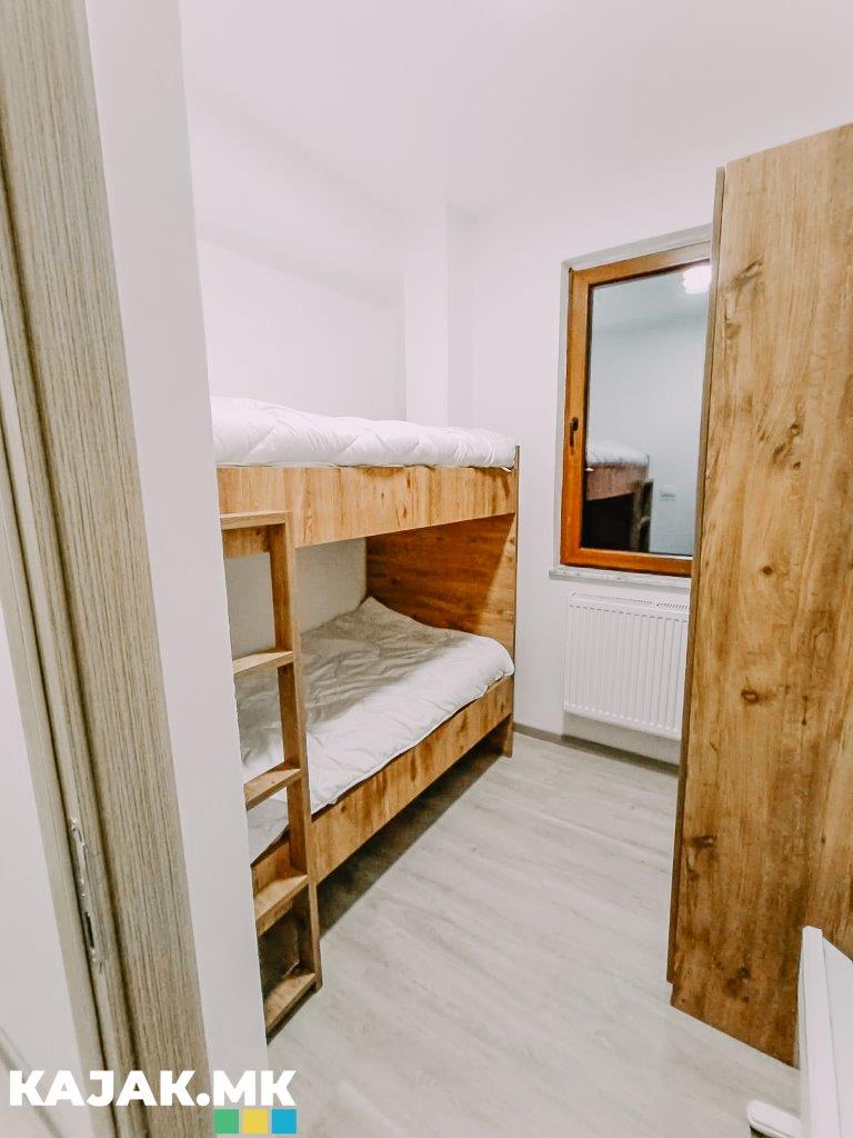 Dy dhoma gjumi (një me krevat të dyfishtë dhe një tjetër me dy shtretër njëpersonësh).