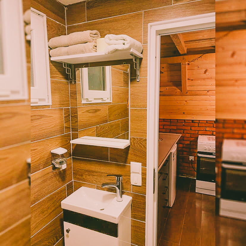 - Çdo shtëpizë ka një kuzhinë të pajisur, banjo/tualet me mjete higjienike dhe peshqirë, ngrohje qendrore, sobë shtesë me dru, Wi-Fi, një krevat dopio, një krevat tek, një divan dhe një kolltuk.